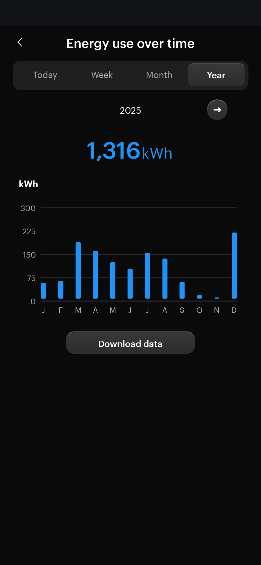 - SPAN tells me this circuit used 1.31 MWh in 2025, but it doesn’t give me a breakdown of grid import vs self-generation.