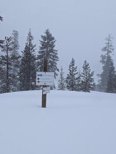 I figured I’d do something like the below. On the hike up, I’d use the Royal Gorge XC trails until reaching the Rowton Peak Trail, which follows the ridgeline up to the peak. It seemed like relatively low risk of avalanche, due to the low angles and staying on the ridge.